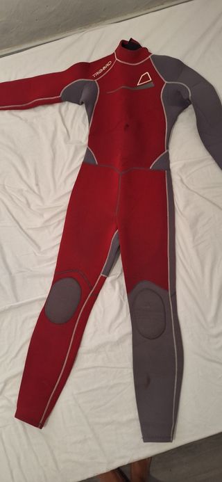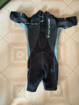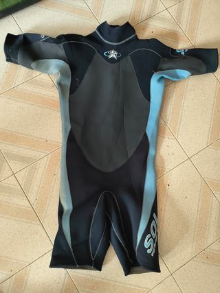 traje de neopreno de 3 mm muy comodo, caliente esta nuevo solo tiene las marcas de sol por estar fuera pero esta en perfecto estado rodillas cremallera puños. Pesca submarina, surf, buceo, snorkel, kayak, piragua, submarinismo. Se aceptan cambios.
