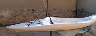Piragua de fibra de vidrio, de 4 metros de eslora, está lijada y las faltas tapadas, solo queda pintarla y ponerle un tambucho. regalo unos anclajes para los remos, dos cornamusas pequeñas y 2 cañeros para ponerla. No se negocia. Kayak, remo, deporte, piragüismo, pesca...