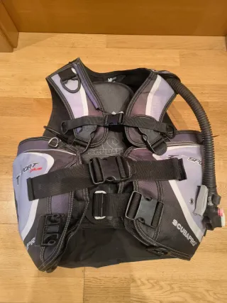Chaleco de buceo Scubapro T-Sport Plus en talla M. Diseñado para ofrecer comodidad y funcionalidad. - Color gris y negro con detalles en blanco. - Cierres de hebilla ajustables. - Manguera corrugada negra. - Logo de Scubapro visible. Escucho ofertas cambios. Palabras gancho: windsurf kitesurf body board snorkel buceo submarinismo kayak piragüismo paddlesurf pescasub pesca submarina