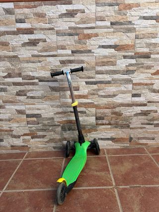 Patinete de tres ruedas para niños y niñas. Ideal para iniciarse en el mundo del patinaje. - Plataforma de color verde. - Ruedas delanteras verdes y trasera negra. - Manillar ajustable en altura.