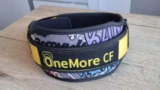 Cinturón de soporte para entrenamiento de fuerza, ideal para CrossFit y halterofilia. Presenta un diseño llamativo con estampado de grafitis y detalles en amarillo. - TALLA S - Cierre de velcro ajustable. - Logo OneMore CF bordado. - Diseño interior con estampado de grafitis. - Borde exterior con detalles en amarillo.