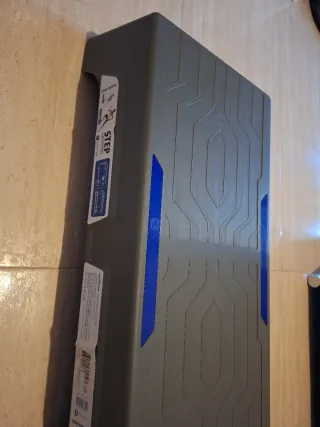 Plataforma de step para entrenamiento deportivo. - Color gris con detalles en azul. - Superficie texturizada para mayor agarre. - Diseño robusto y estable. Decathlon. En perfecto estado
