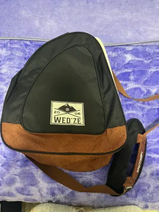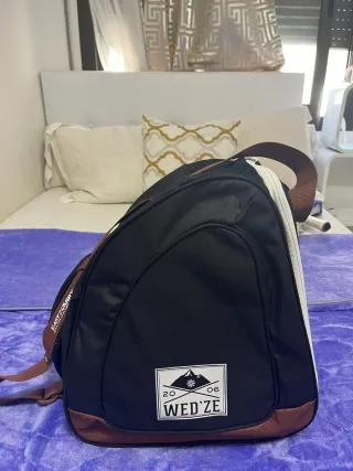 Mochila de esquí de la marca WED'ZE, ideal para transportar tu equipo. - Diseño en color negro y marrón. - Correa ajustable con acolchado. - Etiqueta con logo de la marca.