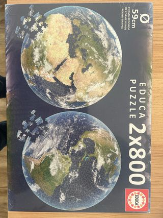 Puzzle de la marca Educa con dos imágenes de la Tierra. Es un puzzle redondo. - 2 puzzles de 800 piezas cada uno. - Diámetro de 59 cm. - Forma redonda. Rotalmente nuevo ( vale unos 20€)