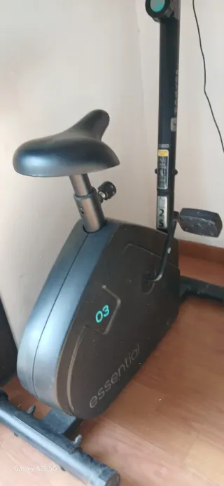 Bicicleta estática de la marca Essential, modelo 03. Diseñada para entrenamientos en casa. - Color negro. - Sillín ajustable. - Pantalla digital. No acepto ofertas