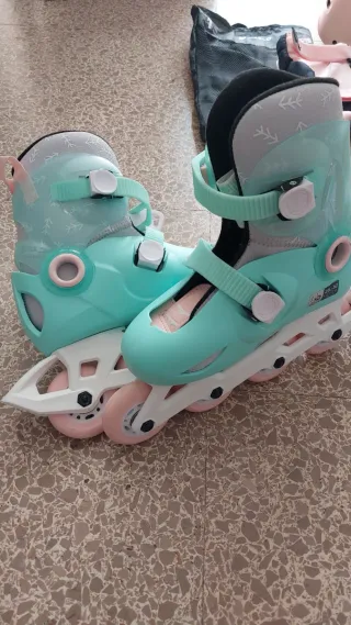 Patines en línea de color verde menta y rosa, ideales para niños. - Talla ajustable de 28 a 31.