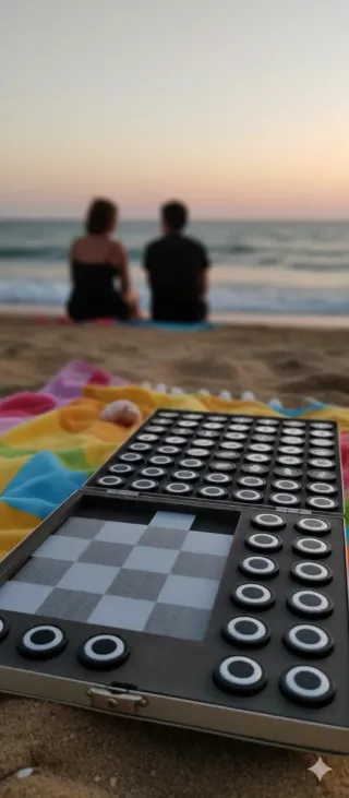 Juego de mesa portátil, ideal para llevar a cualquier parte. Incluye tablero y fichas. Medidas: 12,0 x 12,5 cm - Diseño compacto y plegable. - Tablero a cuadros para ajedrez o damas. - Fichas redondas con borde blanco.