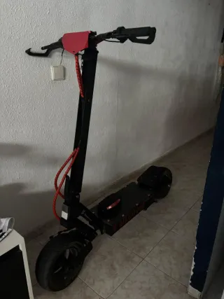 Patinete eléctrico Kukirin G4, modelo 2025. Diseñado para ofrecer una experiencia de movilidad urbana. - Color negro con detalles en rojo. - Plataforma amplia para mayor comodidad. - Manillar rojo modificado sin pantalla