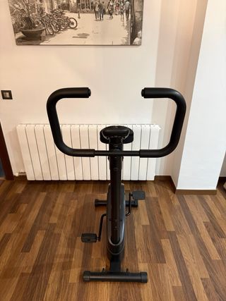 Bicicleta estática Domyos Q3 en buen estado. Ideal para entrenamientos en casa. - Diseño compacto y funcional. - Asiento ajustable en altura. - Pantalla digital para seguimiento de ejercicio.