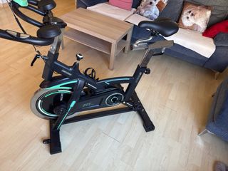 Bicicleta de spinning Cecotec Extreme 25 en color negro y detalles en verde azulado. - Diseño moderno y robusto. - Pantalla digital integrada. - Sillín ajustable. - Manillar ergonómico. - pedales automáticos - tengo pedales normales - regalo zapatos la talla 41 - la vendo por poco uso y no utilizar , comprada hace 4 años .. - el precio puede ser negociable ...