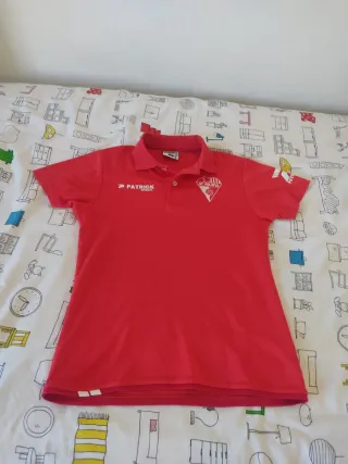 Polo de manga corta del Atlético Polinya. - Talla XS junior. - Color rojo. - Logo de Patrick en el pecho. - Escudo del club en el pecho.