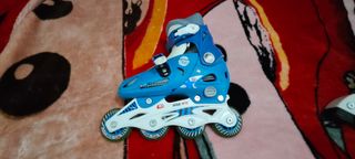 Patines en línea City Kids Step One, ideales para iniciarse. - Diseño en color azul y blanco. - Ruedas verdes con detalles. - Cierre de velcro y hebilla. - Ajustables, desde talla 32 hasta 35
