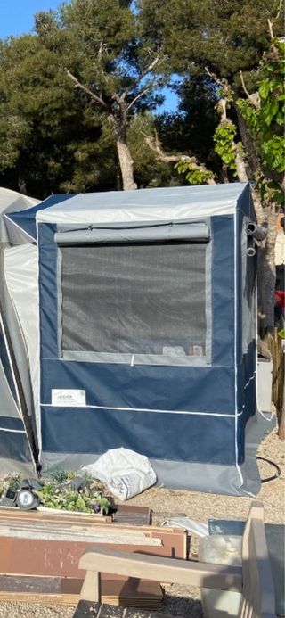 tienda cocina camping, 150x250 cm, 1,5m x 2,5m, es una cocina pensada para ir anexa al avance, pero se puede montar independiente, lleva un fuelle de union, el cual sino se usa se puede dejar recogido o incluso cortarlo sino se quiere