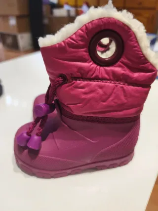 Botas de nieve para bebé, ideales para mantener los pies calientes y secos en invierno. Cuentan con un forro interior suave y un diseño práctico. - Color fucsia. - Cierre con cordón ajustable. - Suela de goma antideslizante. -Apenas uso - 18/19 11.5cm