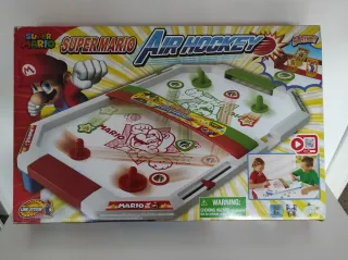 Juego de mesa Super Mario Air Hockey. Perfecto para los fans del personaje. - Incluye dos mazos y dos discos. - Diseño temático de Super Mario. - Edad recomendada: 4+ años.