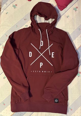 Chaqueta de esquí DOPE. - Color burdeos. - Diseño con logo central. - Capucha con cordones. - Bolsillo frontal. - Ventilación debajo del brazo - Bolsillo para forfait en la manga - Transpirable e Impermeable. Talla S, se ha usado 3 veces contadas.
