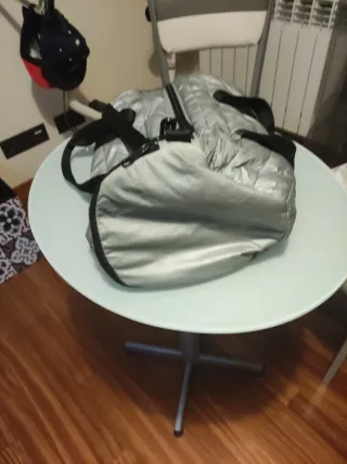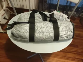 Práctica bolsa de deporte Converse en color plateado, ideal para llevar tus cosas al gimnasio o para viajes cortos. Su diseño acolchado le da un toque moderno. - Color: Plateado - Marca: Converse - Material: Textil acolchado