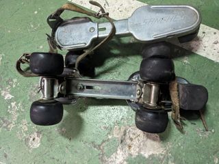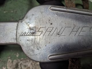 Patinetes clásicos de la marca SANCHEZ IRUN, ideales para coleccionistas o para revivir la nostalgia. - Estructura metálica. - Ruedas de goma negra. - Correas de sujeción de cuero.