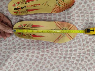 Plantillas ortopédicas Biotech Champion. Cortadas a 27,4cm puestas 3 veces - Diseño Energetic y Dynamic. - Fabricadas en España. - Color amarillo con detalles en rojo y negro.