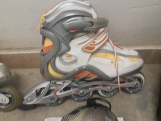 Se venden patines en línea Fila en talla 40. Son cómodos y están diseñados para patinar. - Color blanco, naranja y gris. - Cierre con cordones y velcro. - Ruedas de alta calidad.