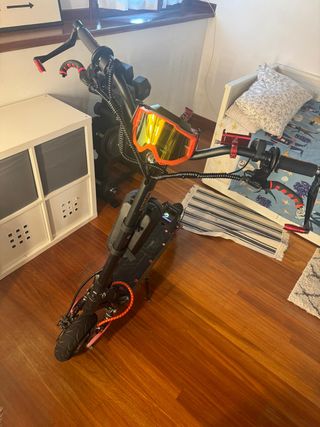 Patinete eléctrico Ice Q5 Evolution Max en color negro y rojo. Diseñado para ofrecer una experiencia de movilidad urbana. "A TODA LECHE" - Manillar con puños de goma PRO Taper y detalles en rojo. - Gafas de protección con lente amarilla y montura naranja incluidas. - Rueda delantera con freno de disco y protector de cables negros y rojos. - Pata de apoyo lateral. - Cubre manos / Manillas - Mochila WILD MAN - Rueda de atras nueva y delantera mas o menos RECIEN SALIDO DEL TALLER CON NUEVO/ Display, Acelerador, Botonera y Rueda trasera nueva, el patin esta perfecto para disfrutarlo IMPORTANTE LEER
