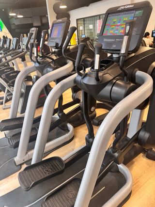 Elíptica Life Fitness con tecnología de paso variable. Diseñada para un entrenamiento completo y adaptable. - Diseño moderno en negro y plateado. - Pantalla integrada para seguimiento de ejercicio.