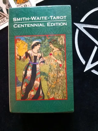 Baraja de tarot Smith-Waite Centennial Edition y tapete con pentagrama. - Incluye la baraja de 78 cartas. - Incluye el libro introductorio. - Tapete de terciopelo negro con pentagrama blanco.