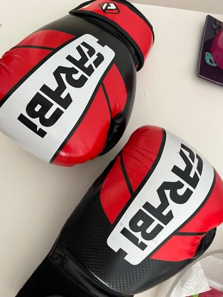 Guantes de boxeo de la marca Farabi. Los he usado un par de veces, están como nuevos. - Talla 12 oz. - Diseño en color rojo y negro.