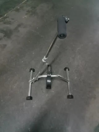 Bicicleta estática compacta, ideal para ejercitar brazos y piernas. - Estructura metálica plateada. - Pedales negros con correas. - Mangos acolchados negros para mayor comodidad. - Ajuste de altura y resistencia con perilla.