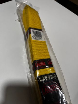 Cinturón de karate para niños de la marca Laguna. - Color amarillo. - Medida: 260cm. - Ideal para iniciación. NUEVO EN SU PLÁSTICO