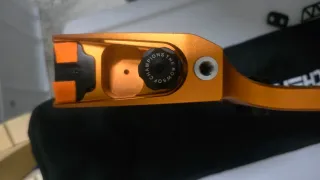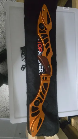 Cuerpo de arco de aluminio con sistema ILF. - Color naranja. - Empuñadura de madera.