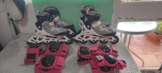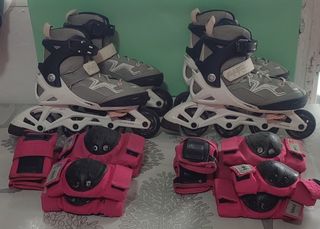 Patines de línea en buen estado lo vendo ,porque le quedan chicas a las niñas.Medias de 32 a 35 de pie.Regalo los protectores de rodillas ,coderas y manos.