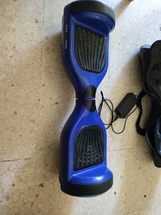 Hoverboard de color azul con diseño moderno. Incluye cargador. - Ruedas con luces LED. - Plataformas antideslizantes. - Mando incluido