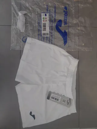 Pantalón corto deportivo de la marca Joma. - nuevos en su bolsa/etiqueta - Color blanco. - Talla 5xs ( de entre 3 a 7 años edad aprox)). - Logo de la marca en la pierna.