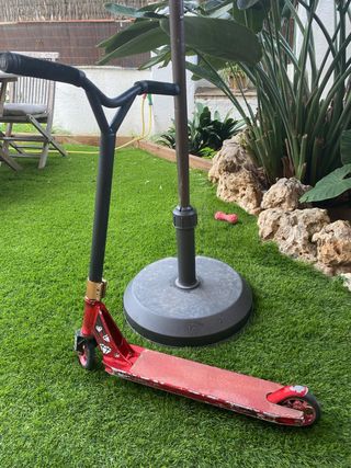 Patinete freestyle de color rojo, ideal para trucos y acrobacias. - Manillar negro. - Base con lija. - Ruedas de goma.