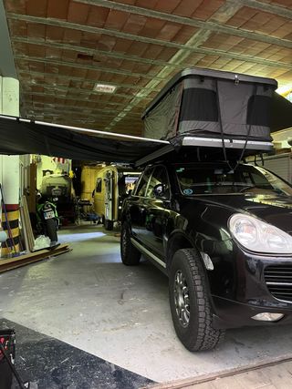 Toldo para camper Bullface de 2,50 metros de ancho. Ideal para añadir sombra y protección a tu vehículo. Se entrega con los soportes fijos originales y otros de anclaje rápido , y una barra de led instalada en el interior. Solo dos salidas . - Color negro. - Material resistente.