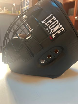 Casco de boxeo con una barra frontal para proteger la cabeza. Está en buenas condiciones. - Diseño moderno y ligero. - Ofrece una buena protección. - Perfecto para entrenamiento.