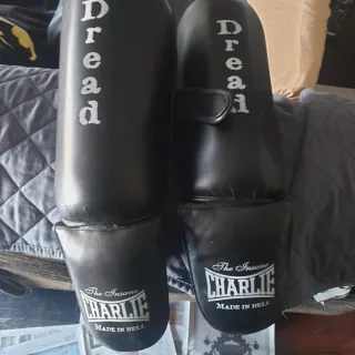 Protecciones para las piernas de kickboxing. - Marca Dread Charlie. - Diseño Made in Hell.