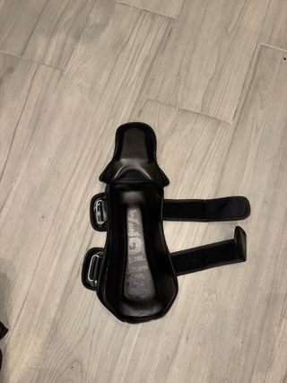 Talla XL. Acolchado grueso en tibia y empeine, muy cómodas y con gran protección. Cierres de velcro que ajustan perfecto y no se mueven al entrenar. Están en muy buen estado, ideales para sparring.
