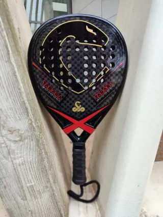 Pala de pádel en perfecto estado. Sin roces, como nueva. Dispone de hesacore en el grupo para mejor agarre. Protección en el canto desde el inicio.