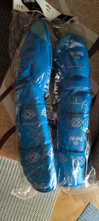 Protecciones para karate de la marca Daedo en color azul. - Diseño acolchado. - Cierre de velcro ajustable. - Tejido resistente.