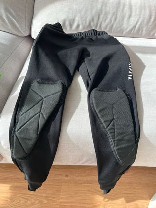 Pantalón de equipación para portero de la marca Kipsta. Diseñado para ofrecer protección y comodidad. - Color negro. - Rodilleras integradas y refuerzo en cadera - Cintura elástica. - Talla 6-8 años