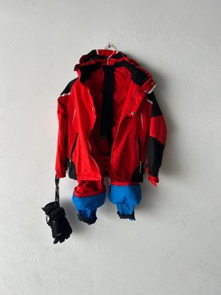 Conjunto de esquí para niño de la marca Etirel, talla 10 años. Ideal para disfrutar de la nieve con comodidad y protección. - Chaqueta y pantalón de esquí. Diseño en color rojo y negro. - Se regala pantalón negro talla 10 Etirel, y botas Quechua talla 37.