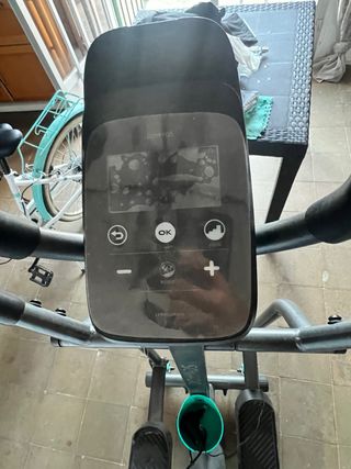 bicicleta eliptica con solo un uso, tiene plastico de proteccion de pantalla