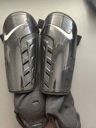 Vendo un par de espinilleras Nike para jóvenes, en buen estado. Son negras y parecen resistentes. - Diseño ligero y cómodo. - Protección para la práctica deportiva. - Ideales para fútbol.