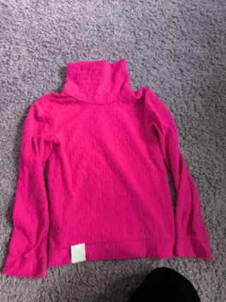 Camiseta térmica de color fucsia, ideal para esquiar o actividades al aire libre. Con cuello alto para mayor protección. - Tejido con textura. - Manga larga. - Talla 7-9 años.