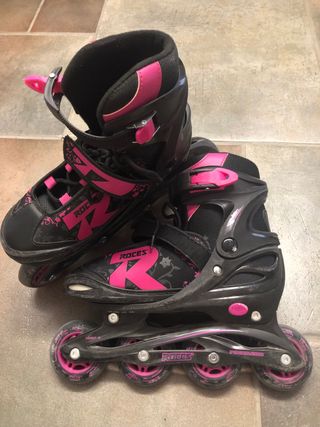 Patines en línea ajustables para chica, marca Pony Dash, talla 35-38. Diseñados para ofrecer diversión y comodidad. - Color rosa y negro. - Cierre de velcro y hebilla. - Ruedas de 70mm con rodamientos ABEC-7. Regalo casco y protecciones