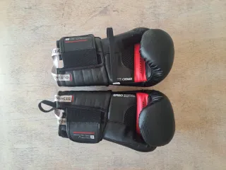 Guantes de boxeo marca Outshock de Decathlon sin uso, talla 8 onzas.Se ajustan bastante bien y van genial para empezar a dar buenos puños 😌 - Cierre de velcro. - Material exterior sintético. - Acolchado para protección. Están como nuevos, se los compre a mi pareja y solo lo uso una vez. ✅️