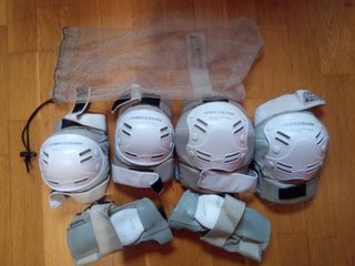 Set de protecciones para patinaje, incluye rodilleras, coderas y muñequeras. - Marca: Powerslide - Talla M - Cierre con velcro ajustable. - Incluye bolsa de malla para transporte. Posibilidad de entrega en mano en Huesca o Zaragoza (en Zaragoza preguntar por fechas).