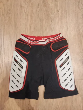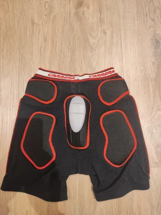 Pantalones cortos de protección con diseño deportivo. Talla M/L - Cintura elástica con logo Carrera. - Protecciones laterales acolchadas. - Tejido de malla transpirable.